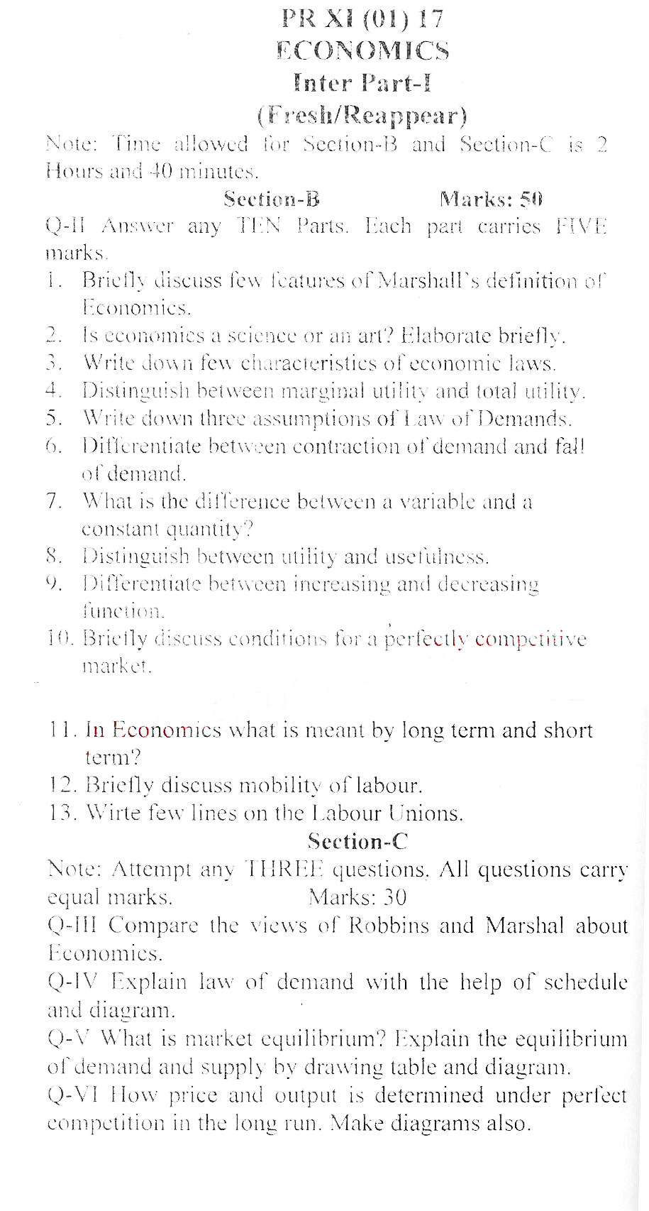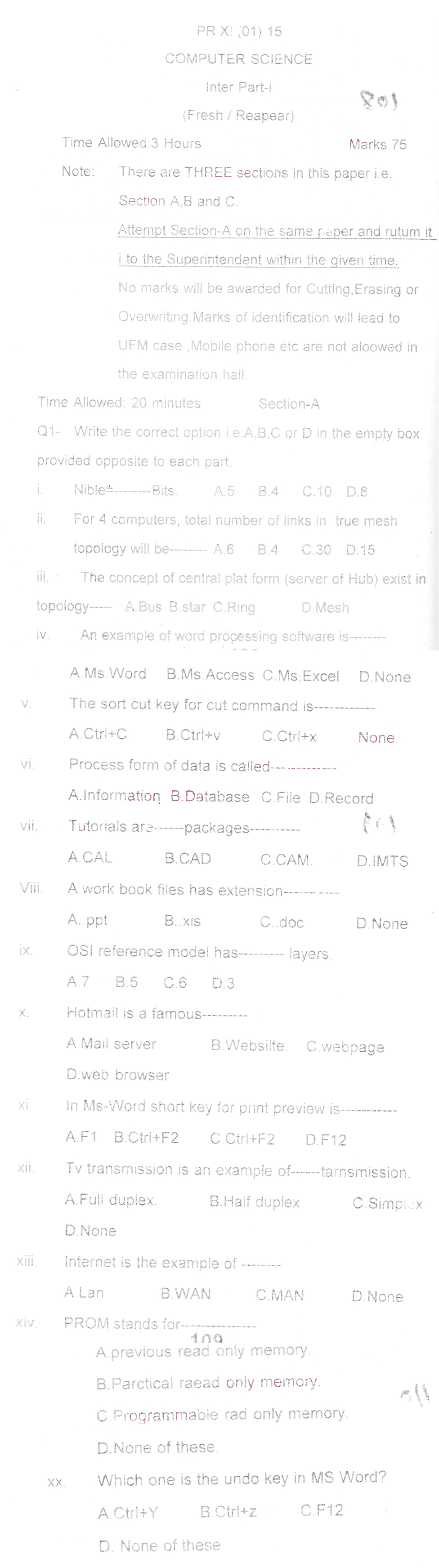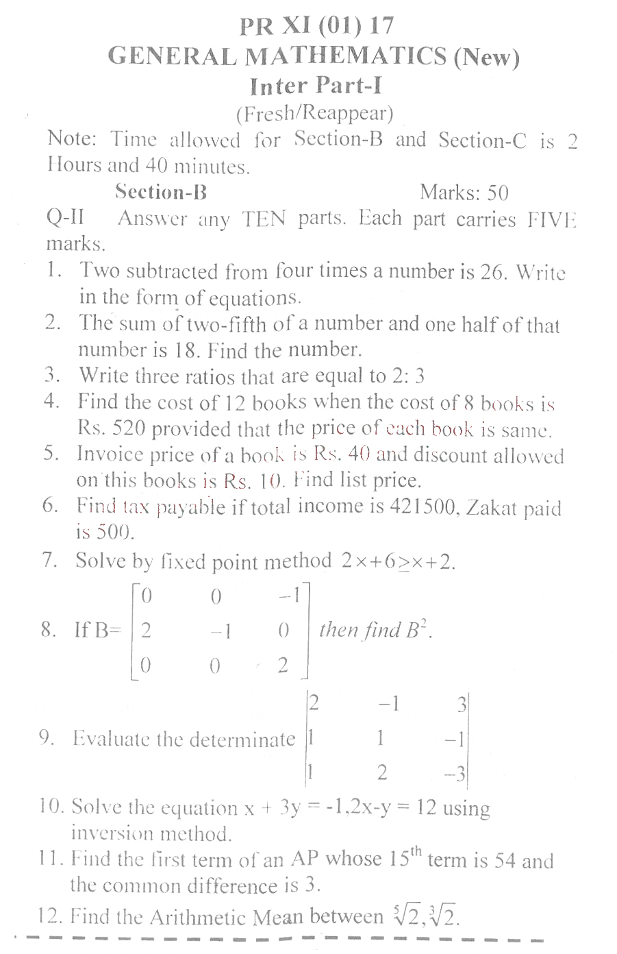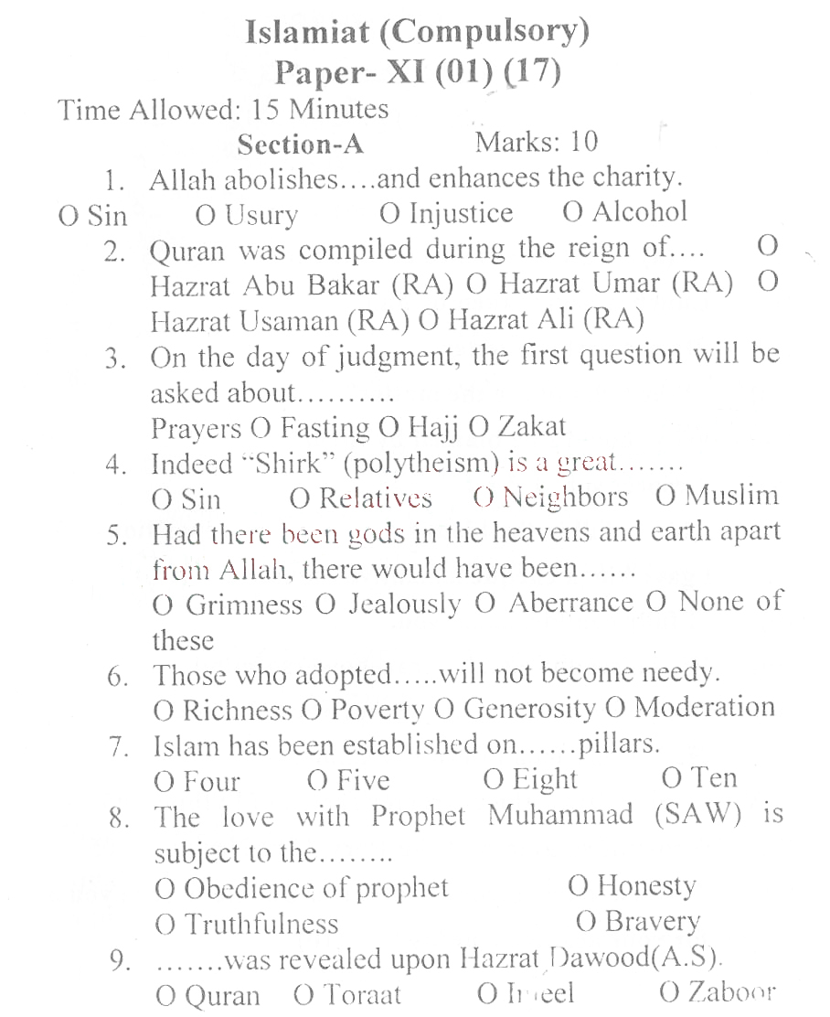 Bise DI Khan Pastpapers 11th class 2017