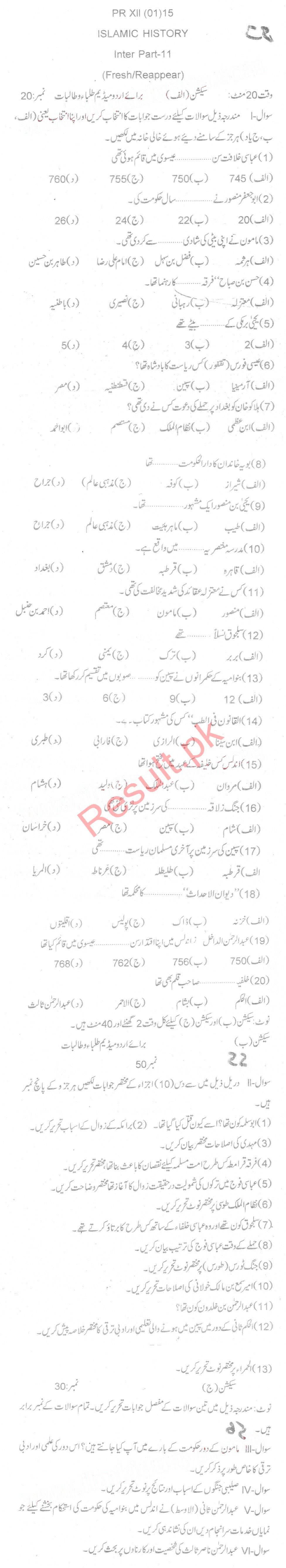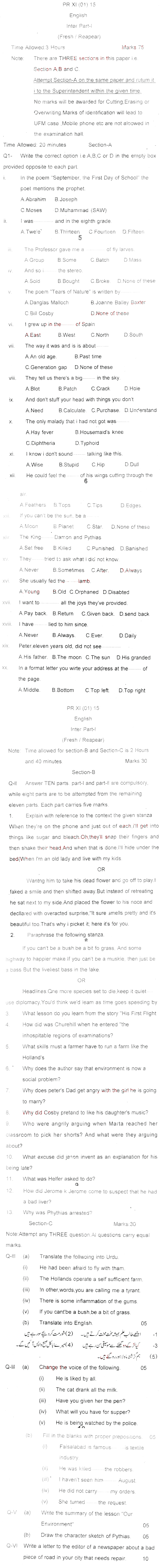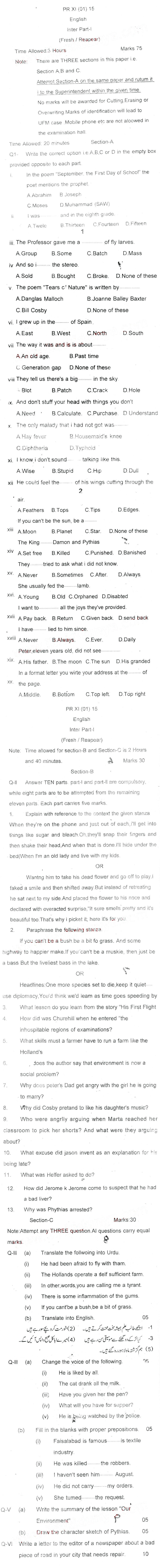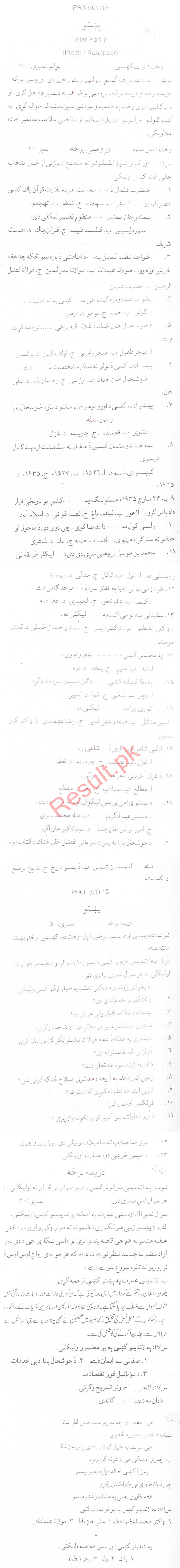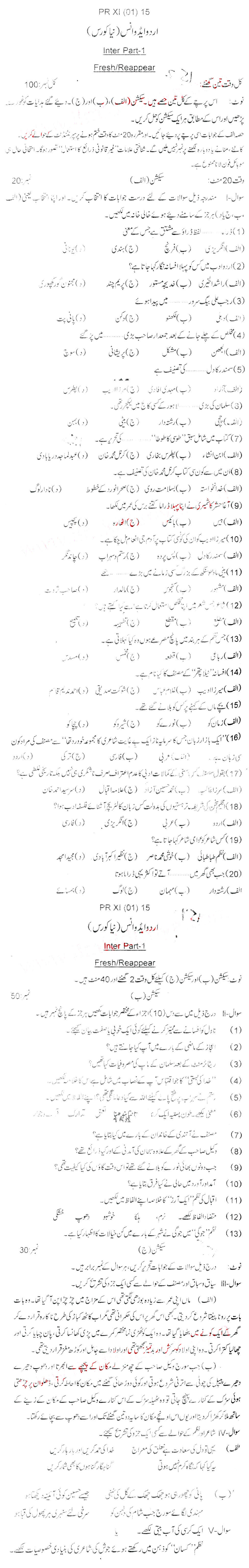 Bise Dikhan pastpaper 2015 12th class