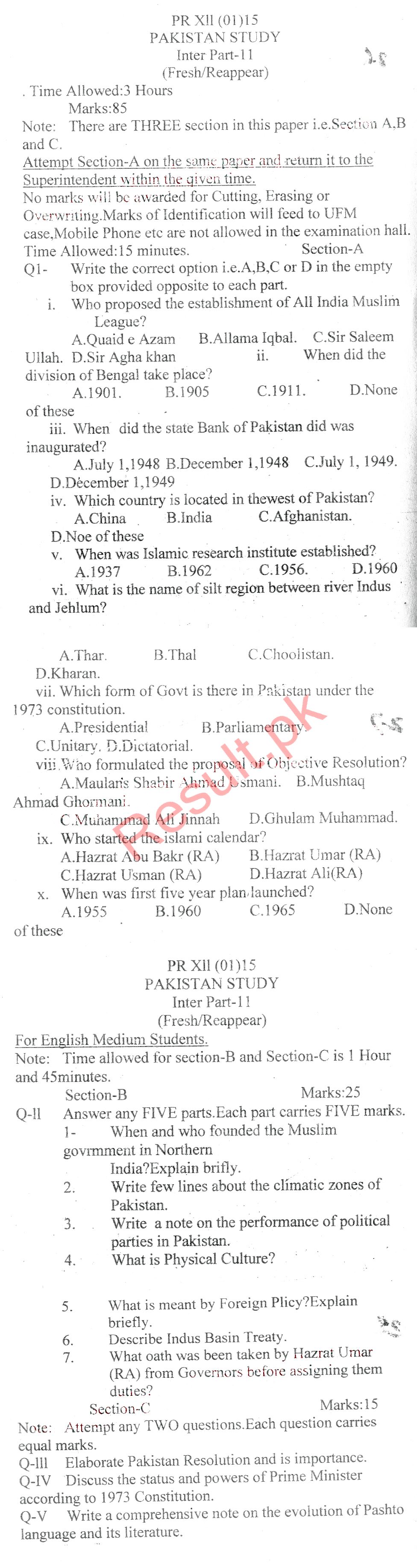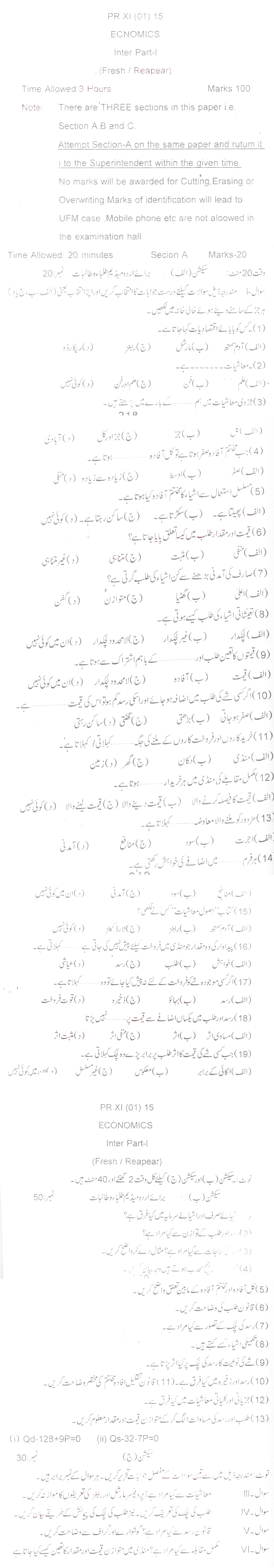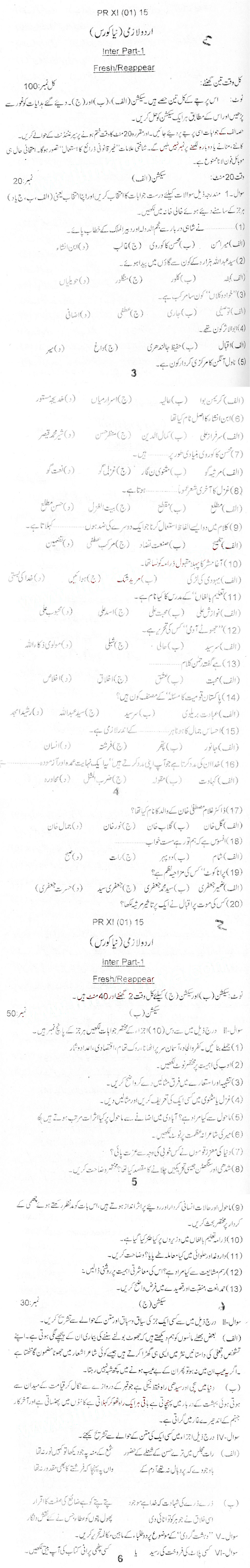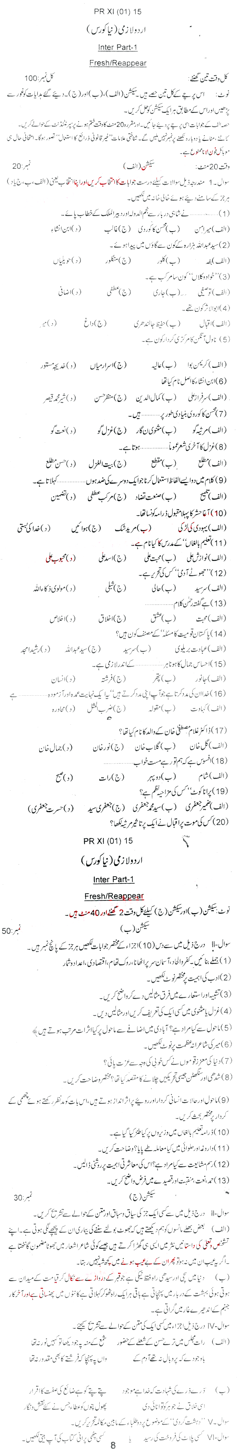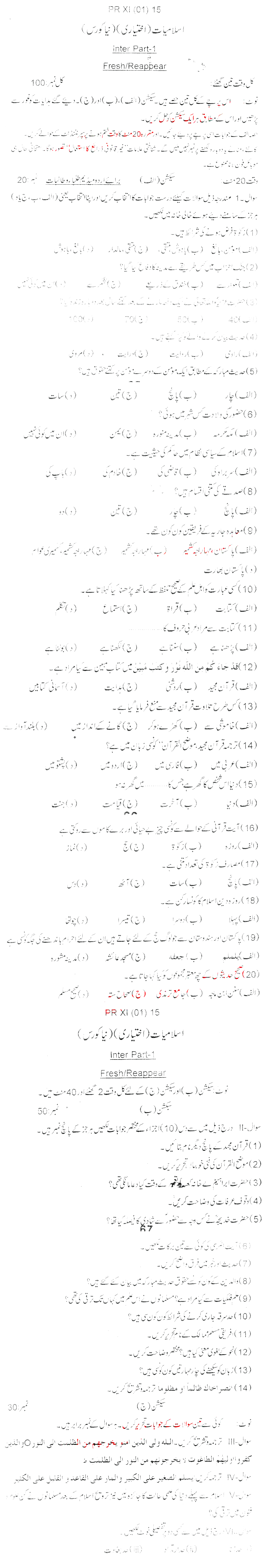 Bise Dikhan pastpaper 2015 12th class