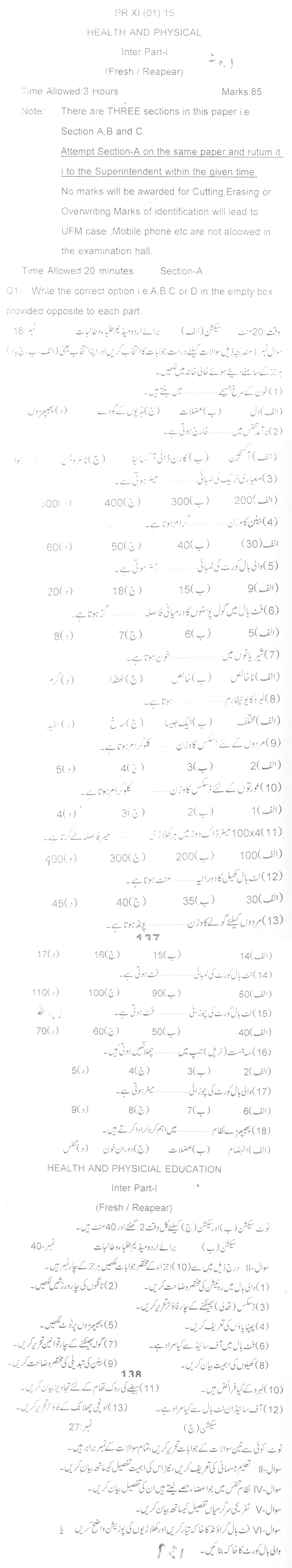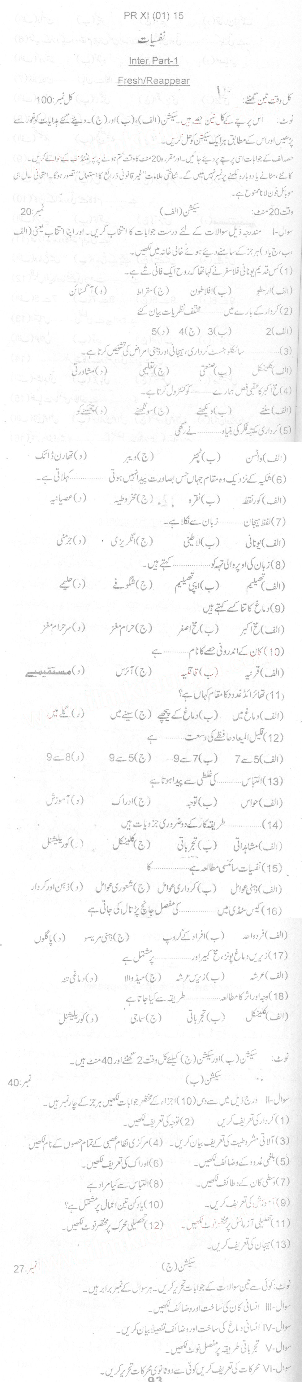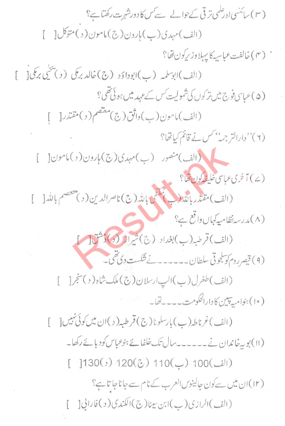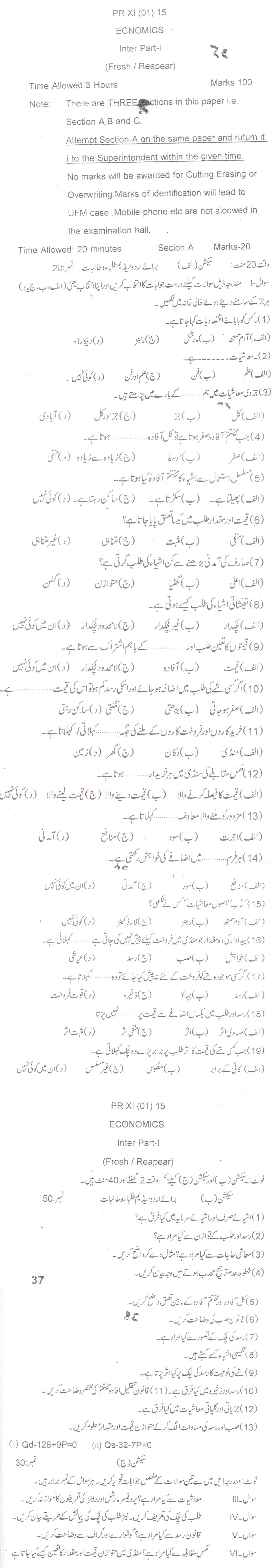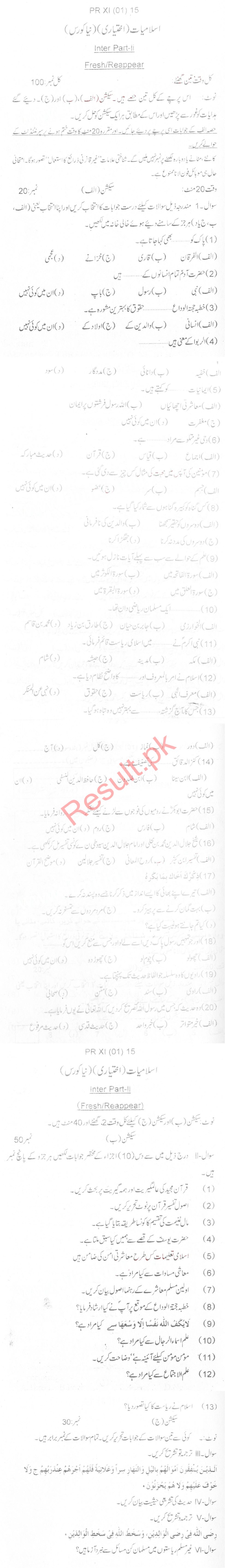 Bise Dikhan pastpaper 2015 12th class