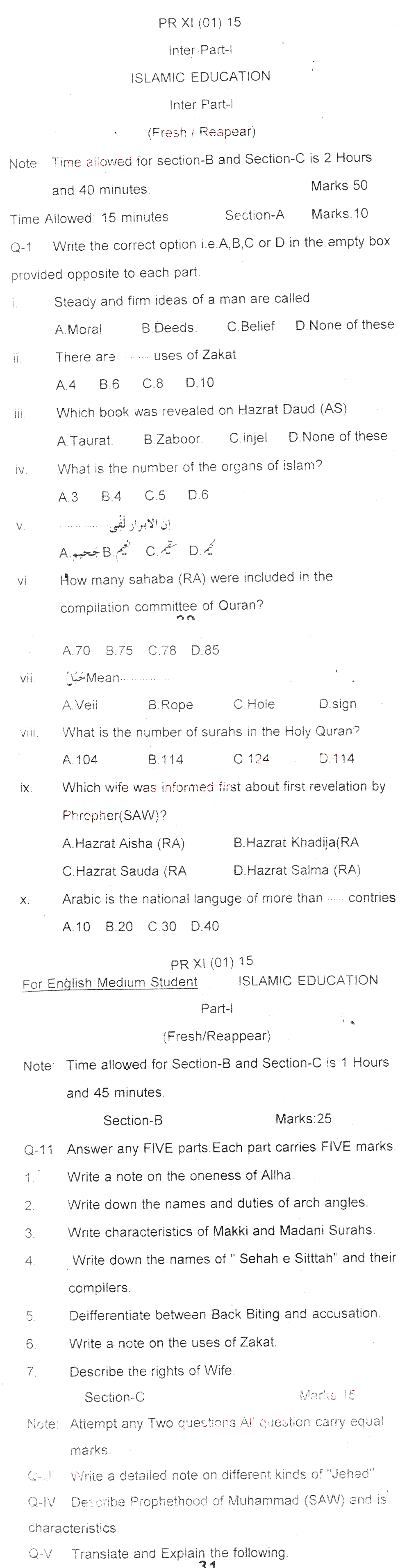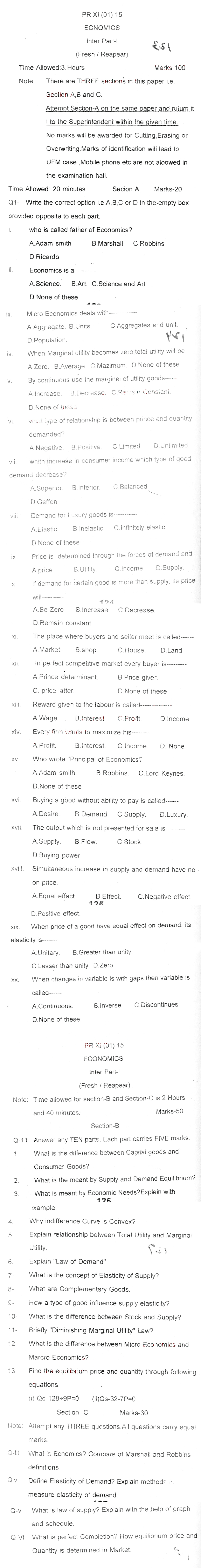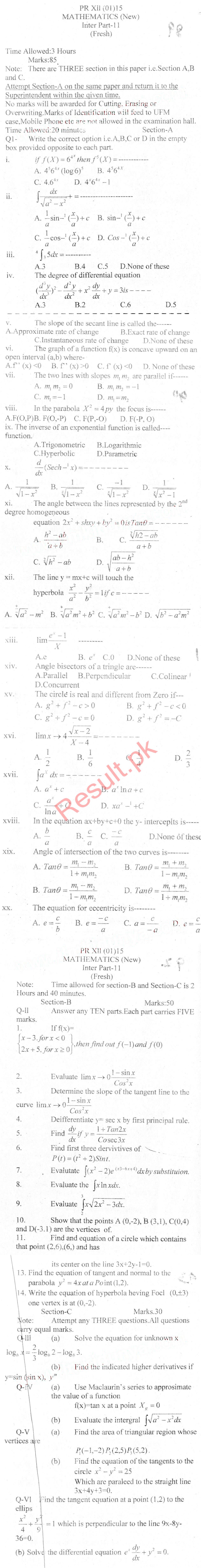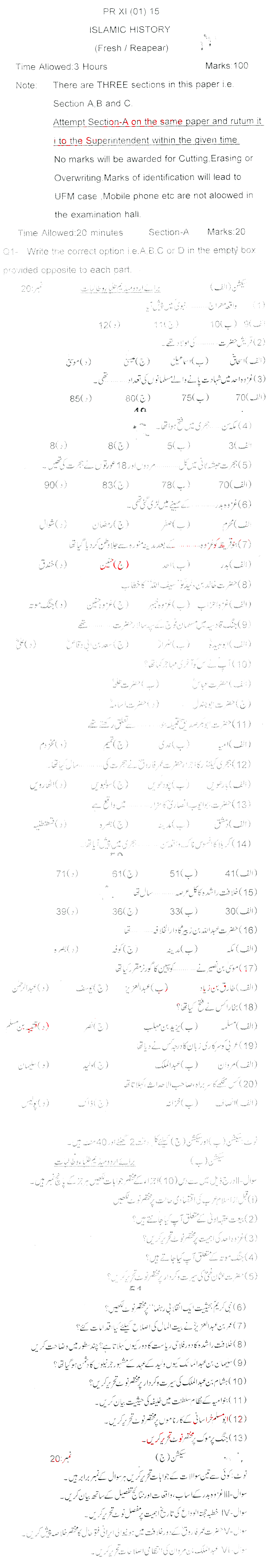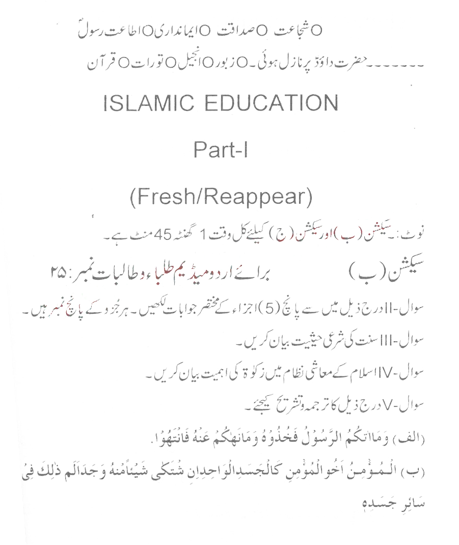 Bise Dikhan pastpaper 2015 12th class