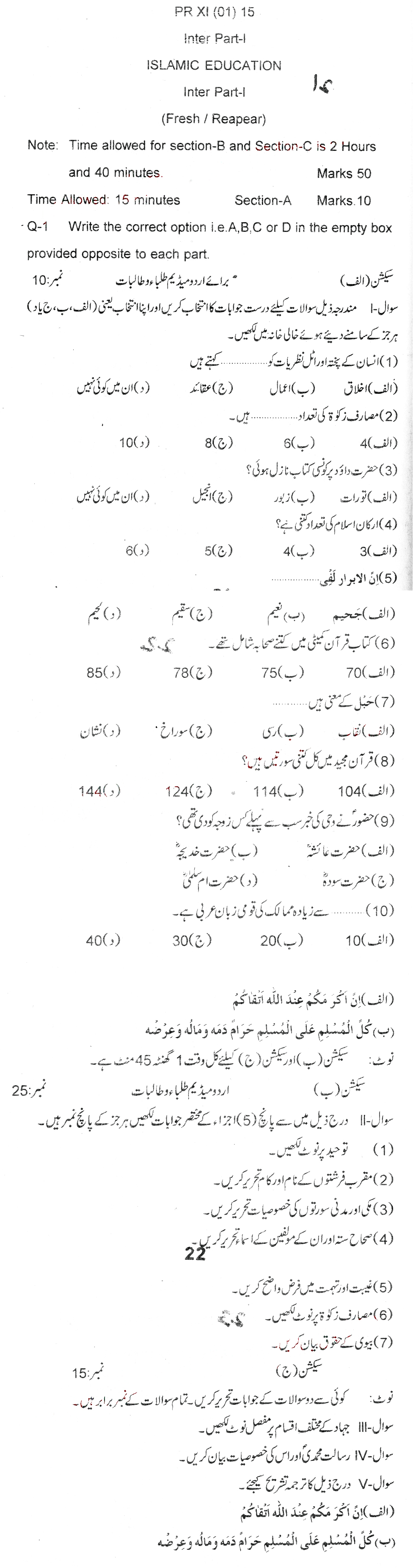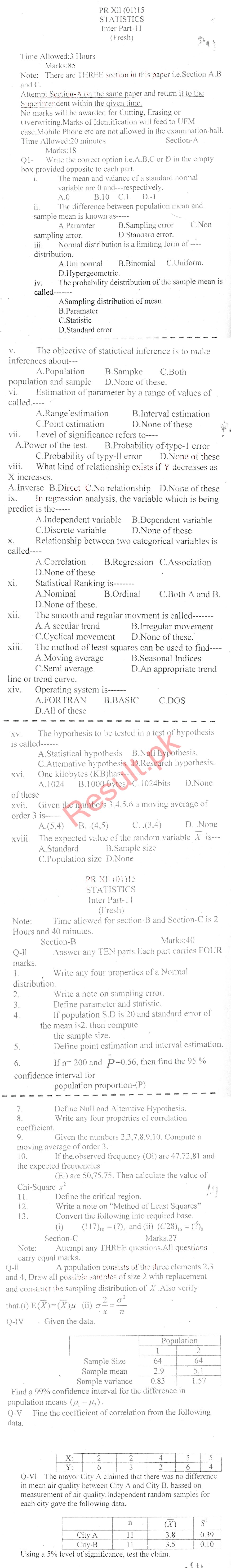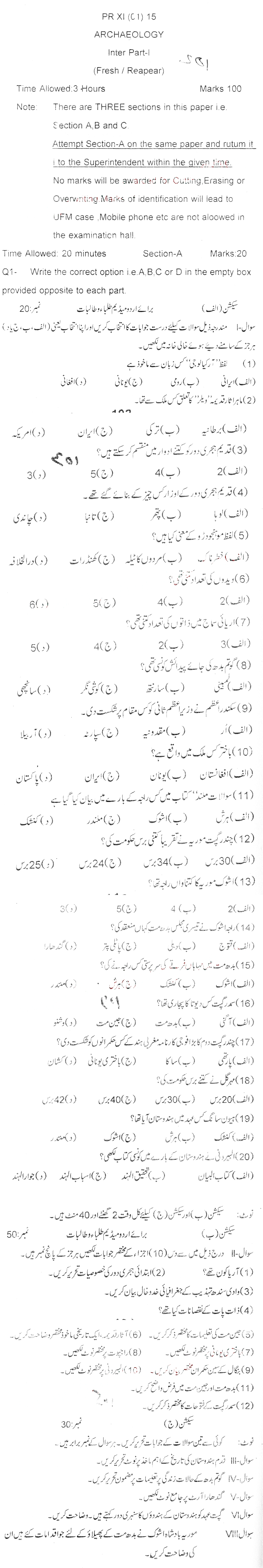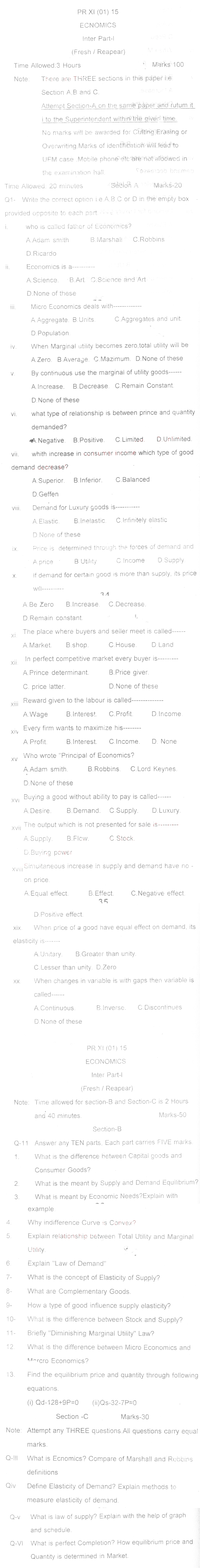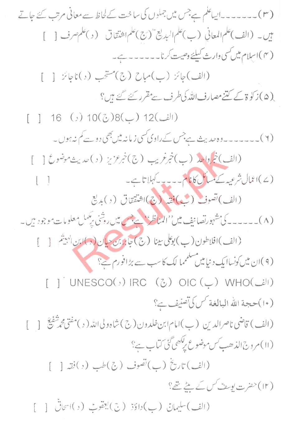 Bise Dikhan pastpaper 2015 12th class