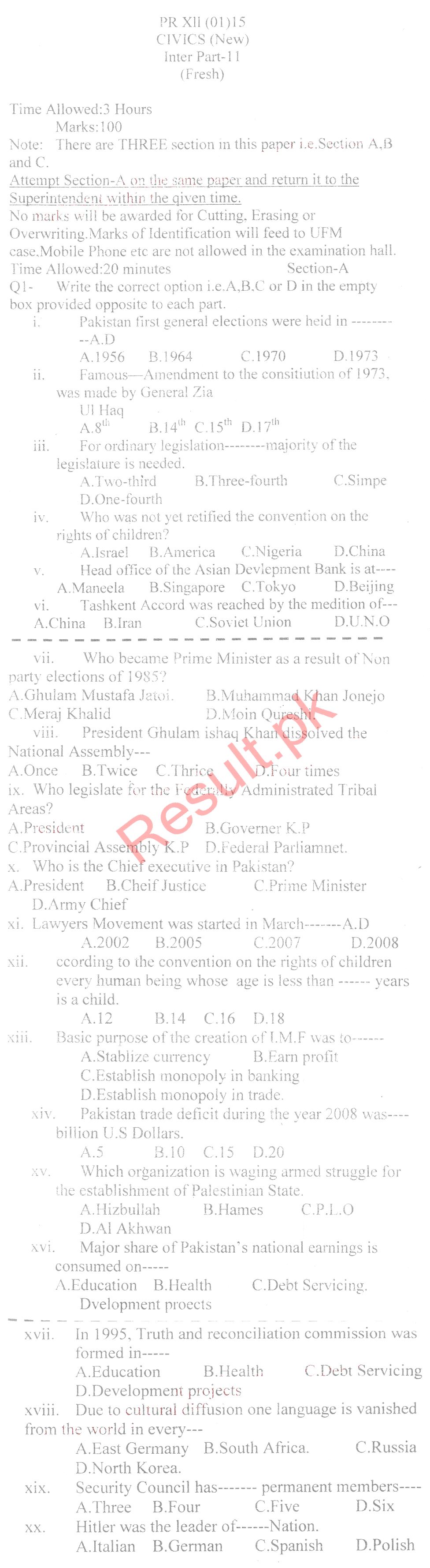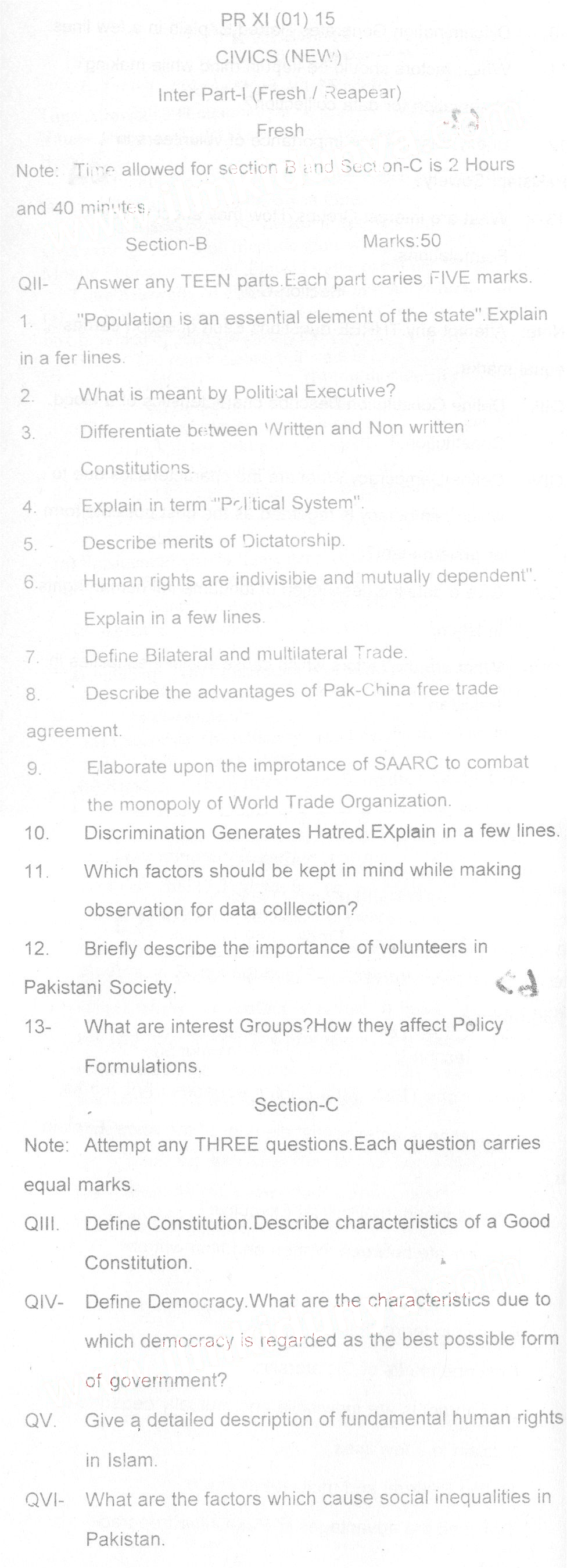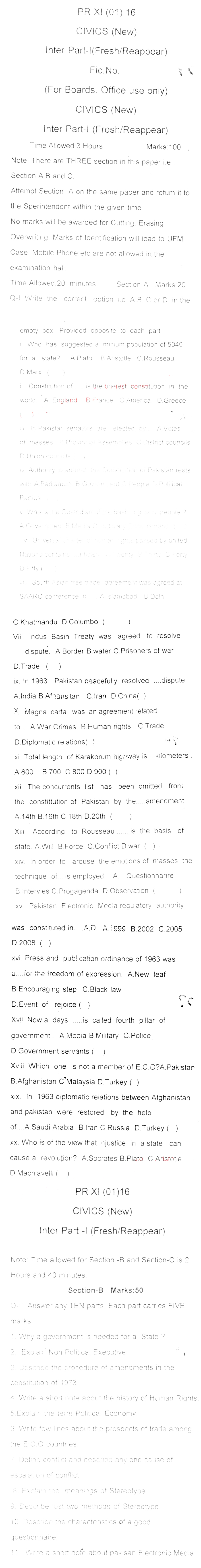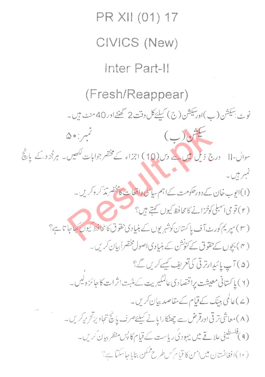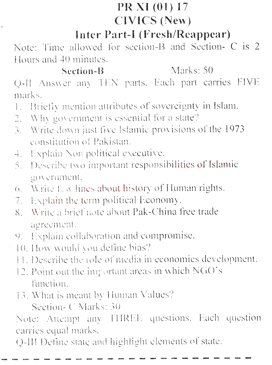 BISE DI Khan HSSC Part 2 Civics Past Paper 2017