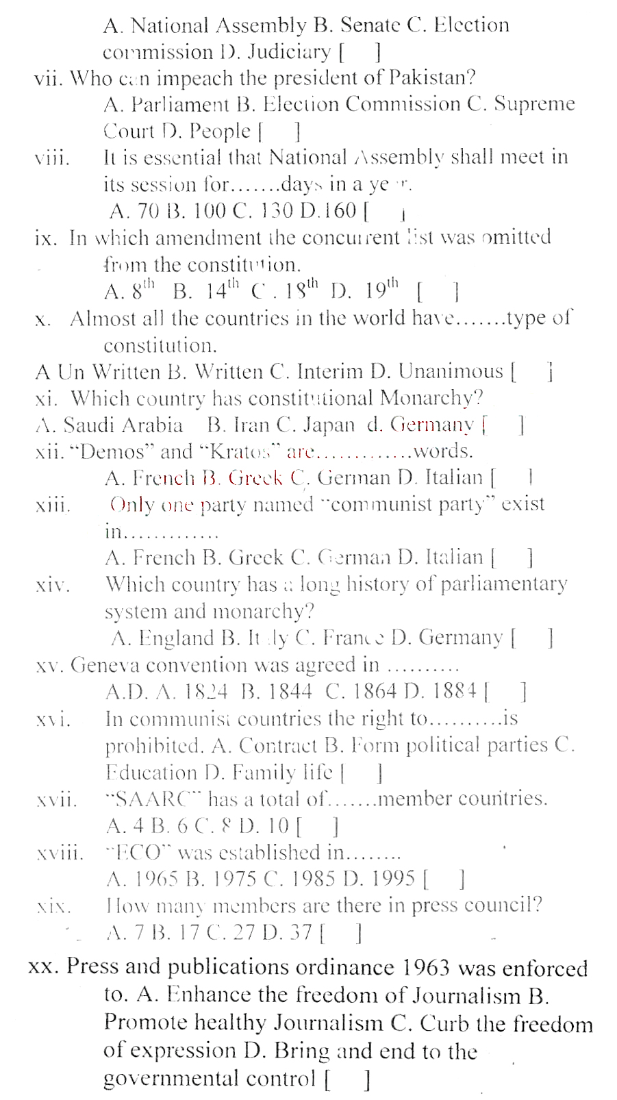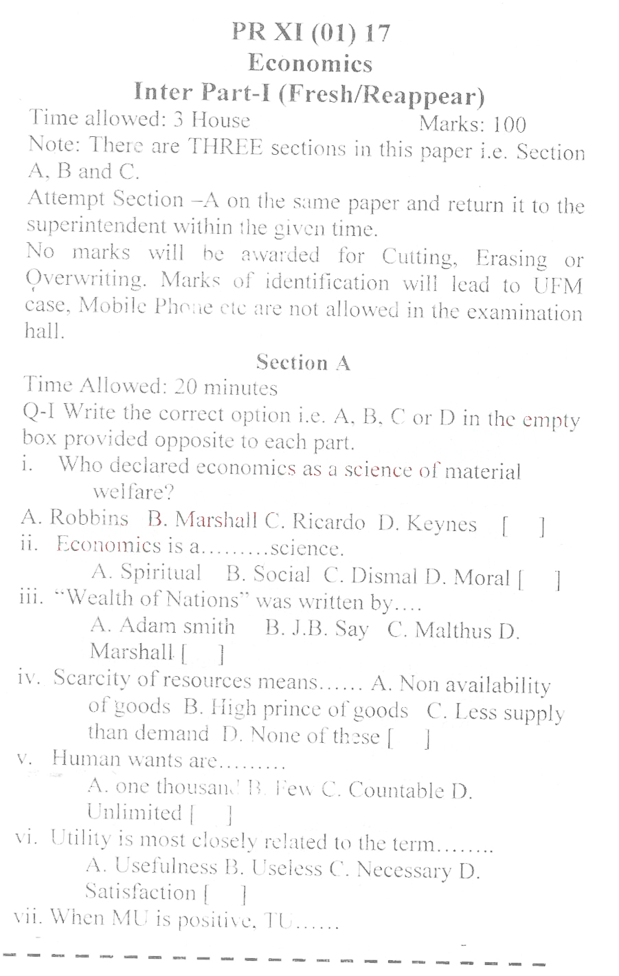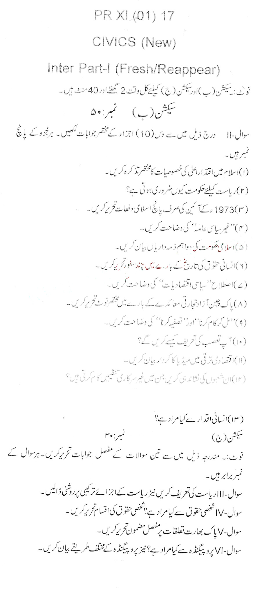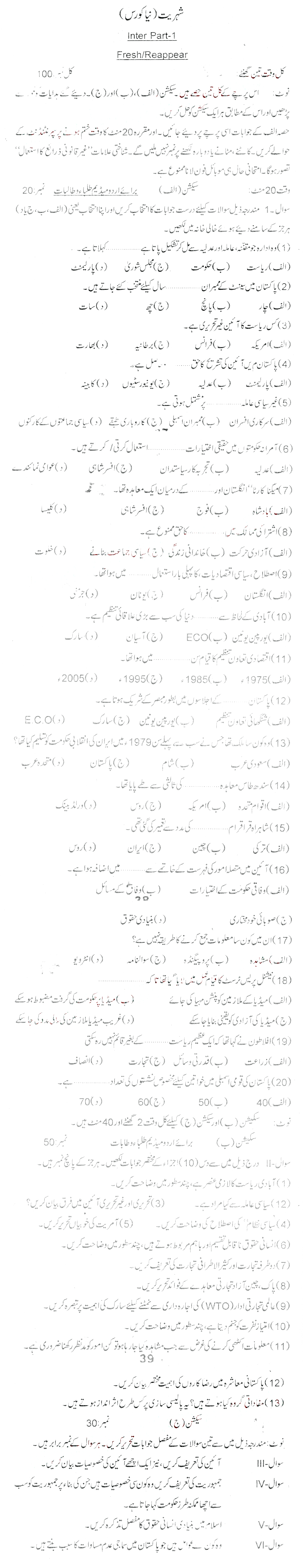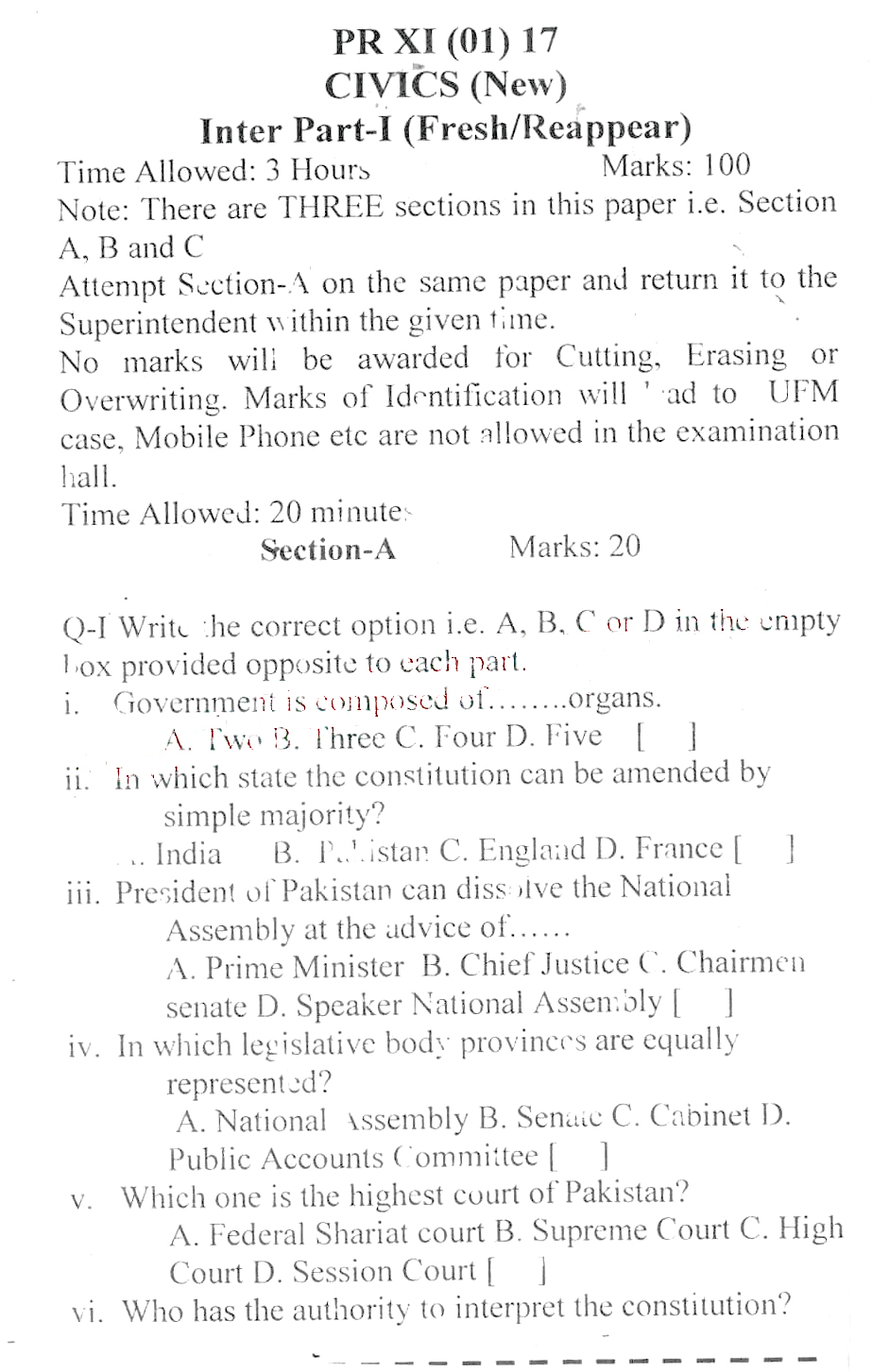 BISE DI Khan HSSC Part 2 Civics Past Paper 2017
