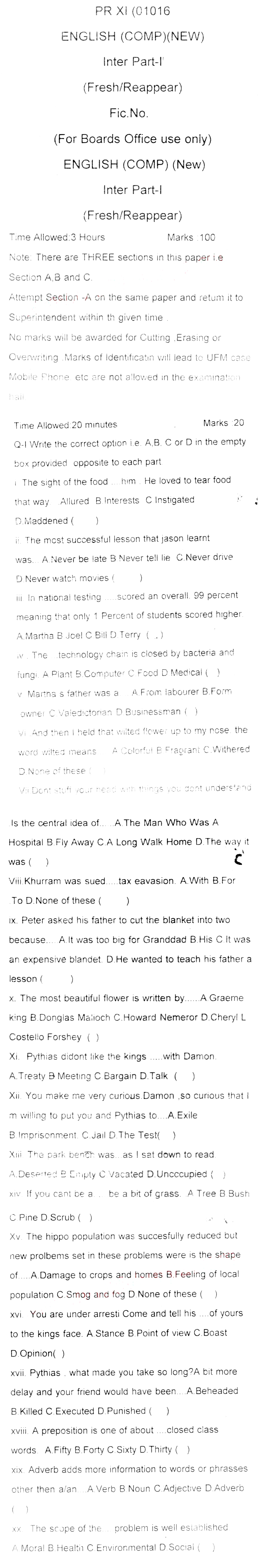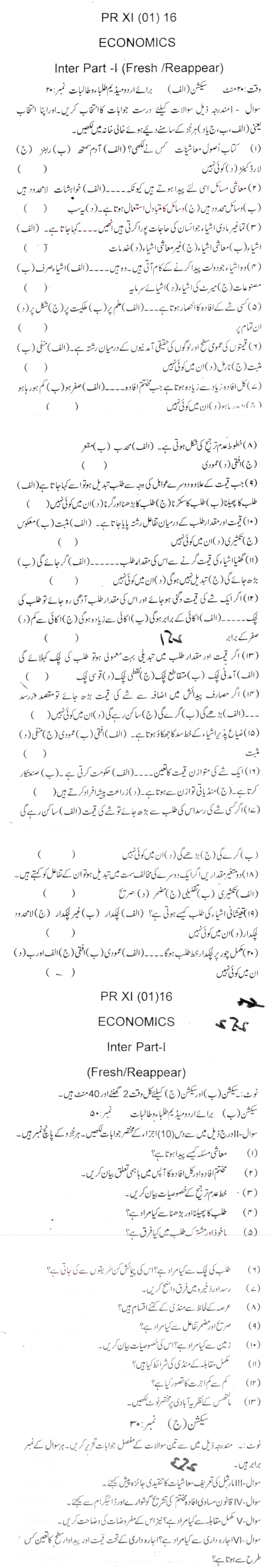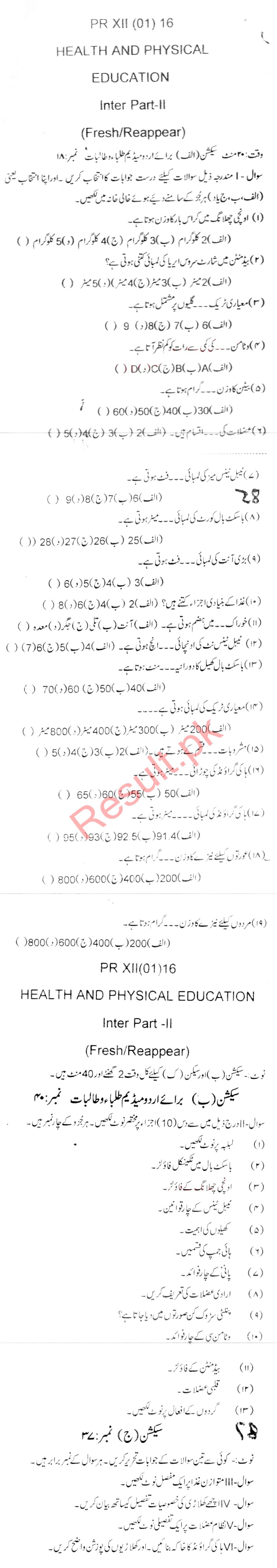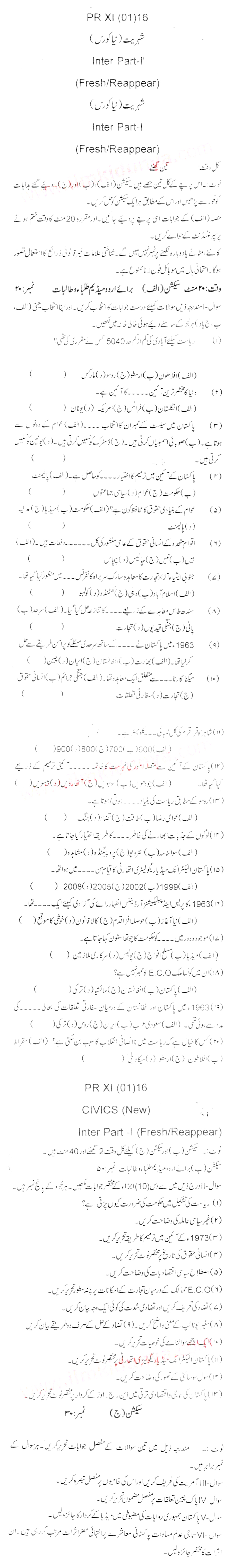 Bise DI Khan Pastpapers 11th class 2016