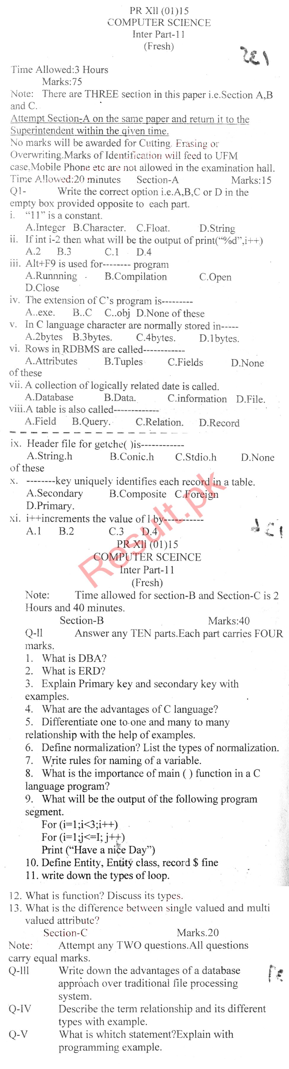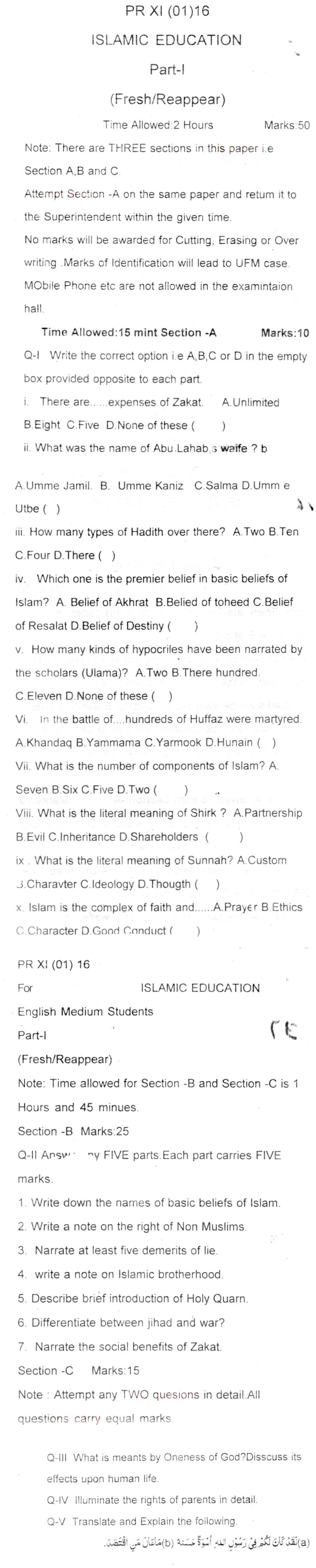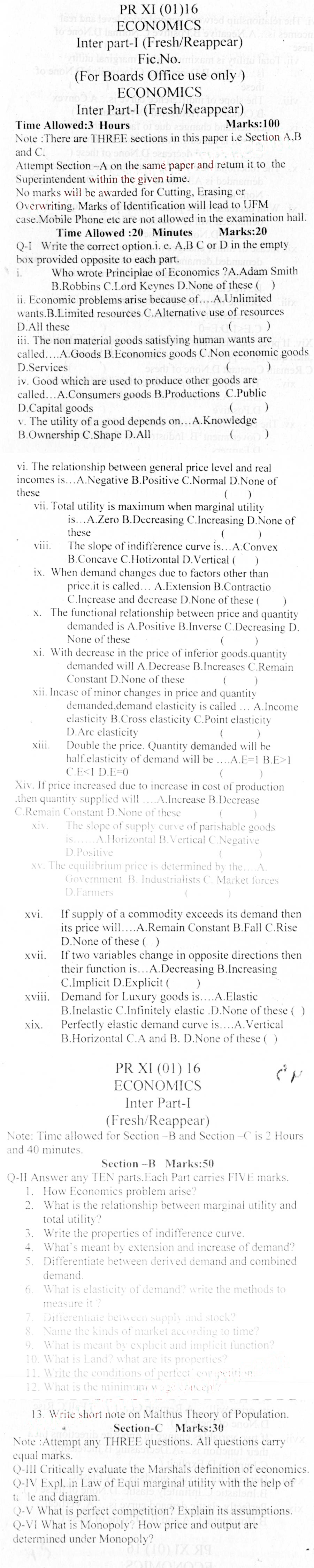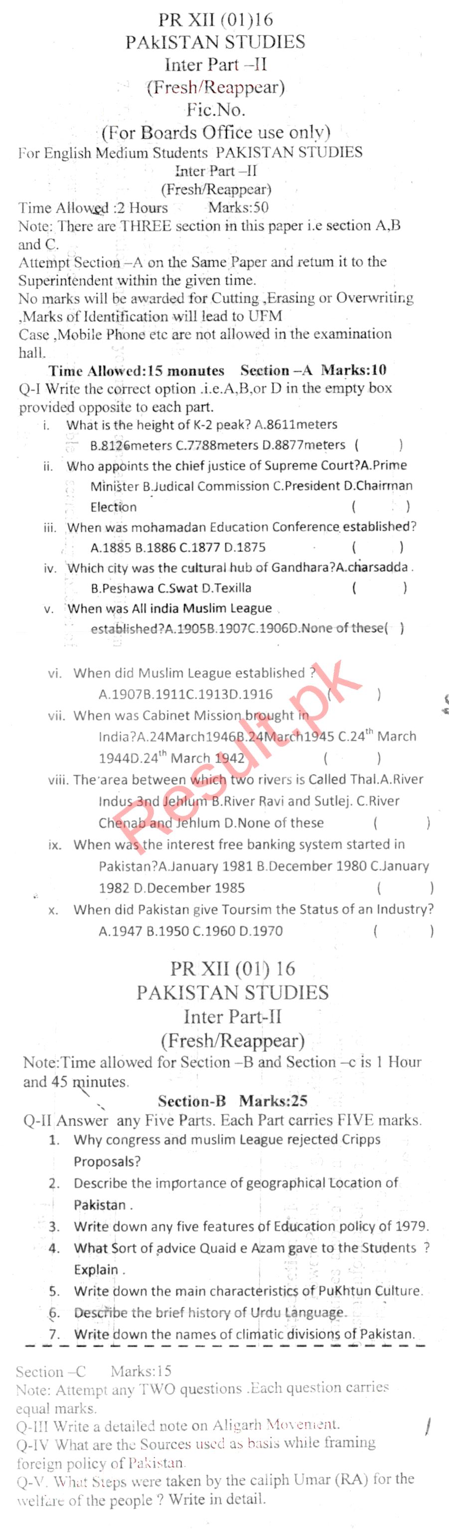 Bise DI Khan Pastpapers 11th class 2016