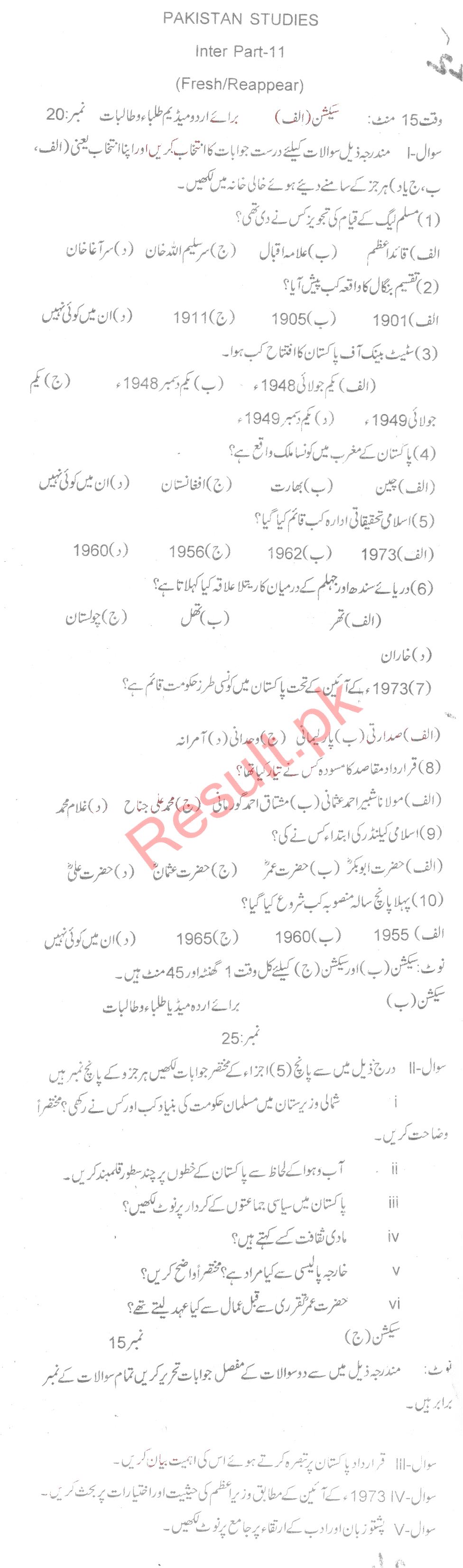 BISE DI Khan HSSC Part 2 Pak-Studies Subjective Past Paper 2017