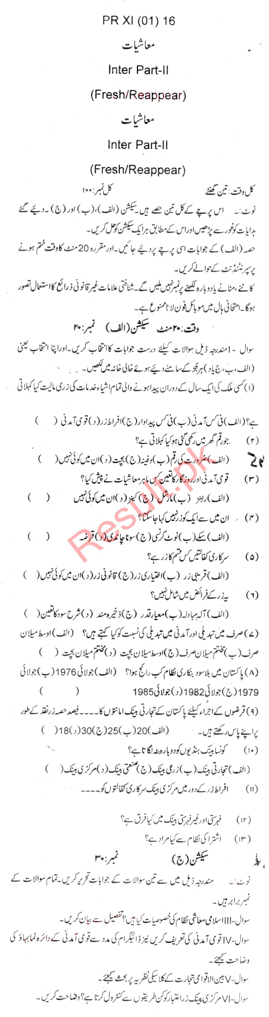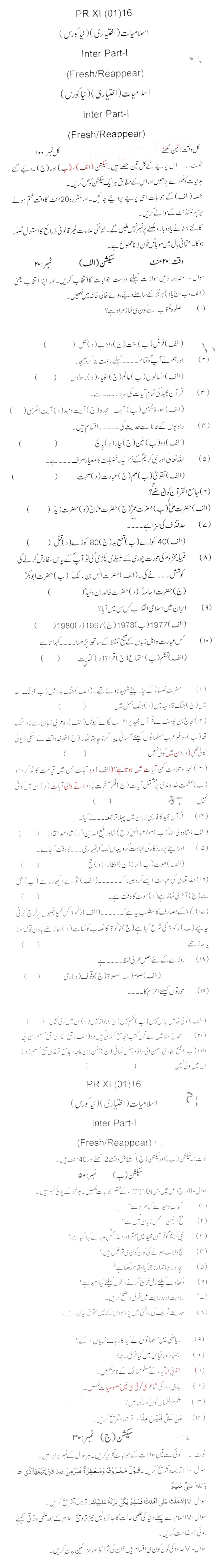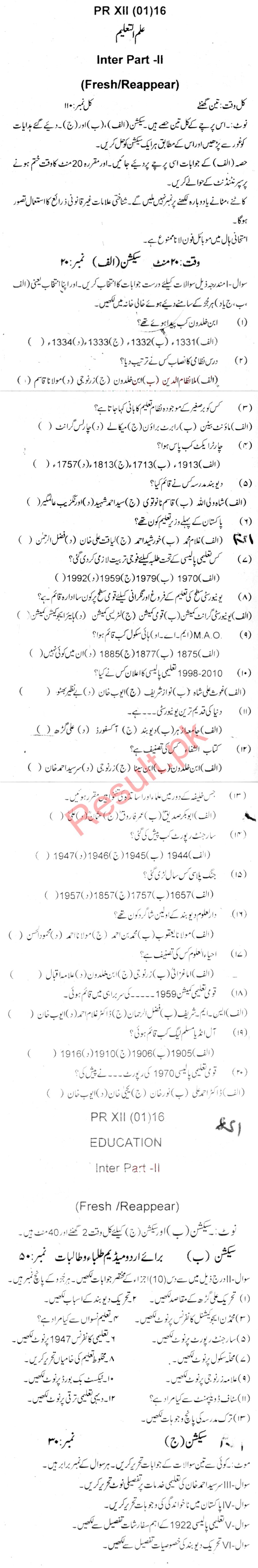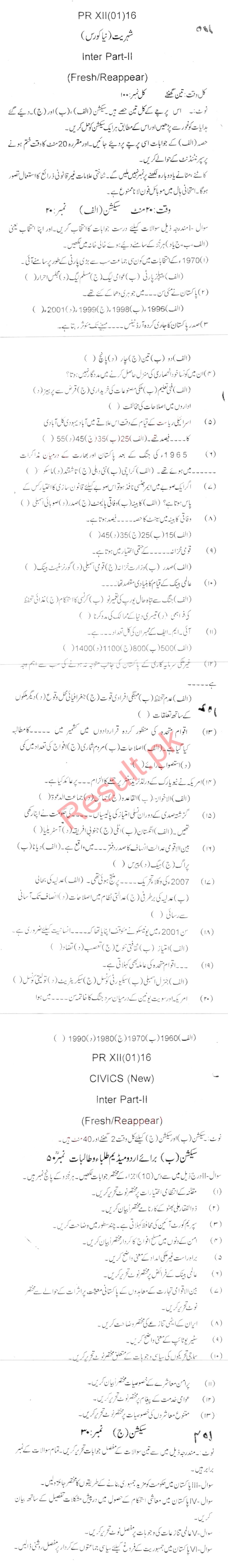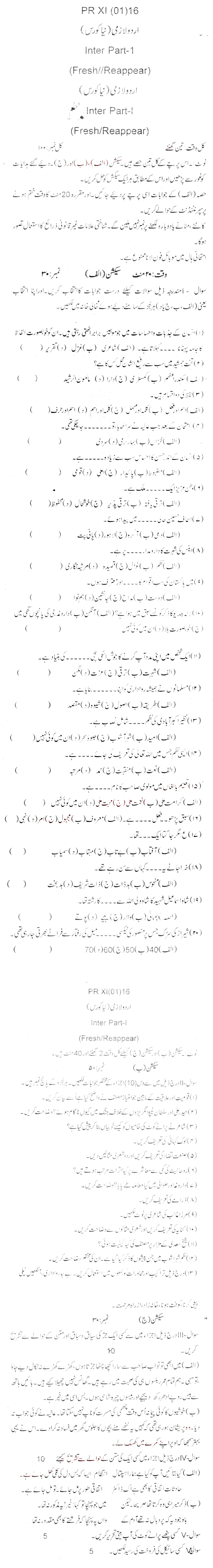 Bise Dikhan pastpaper 2016 12th class