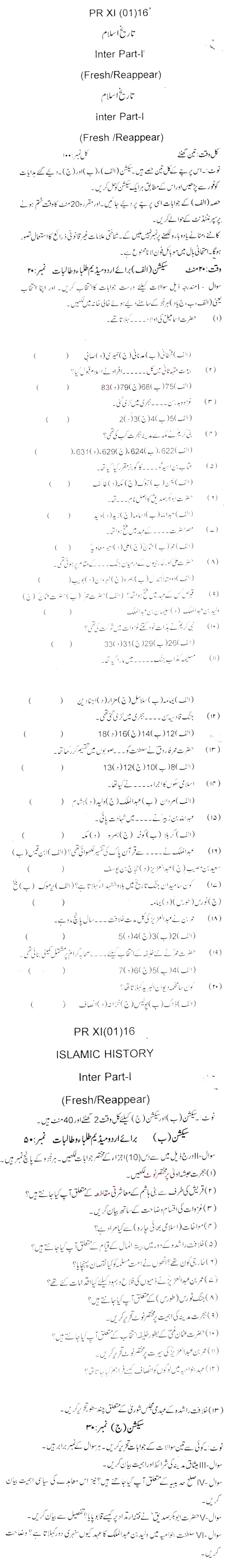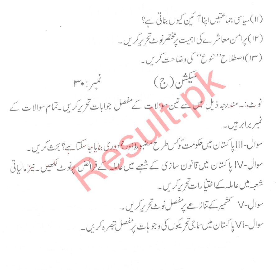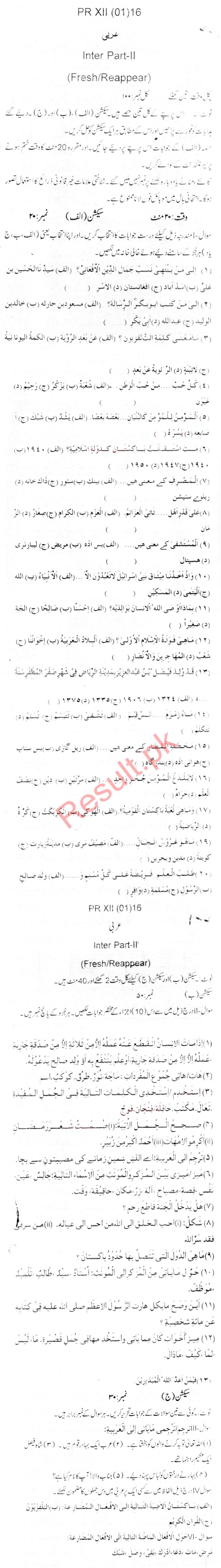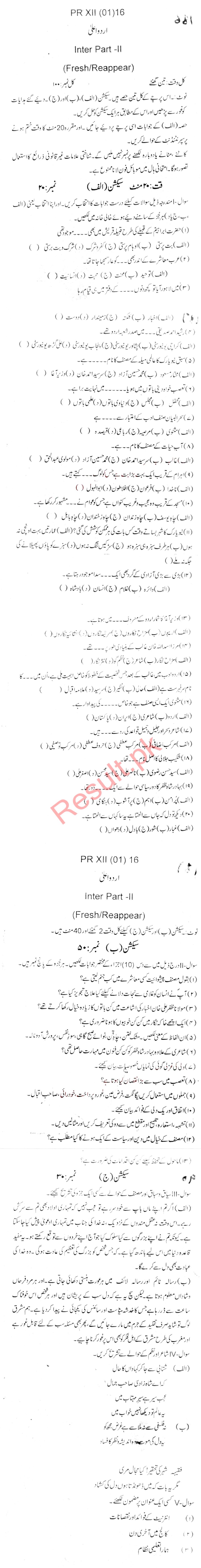 Bise Dikhan pastpaper 2016 12th class