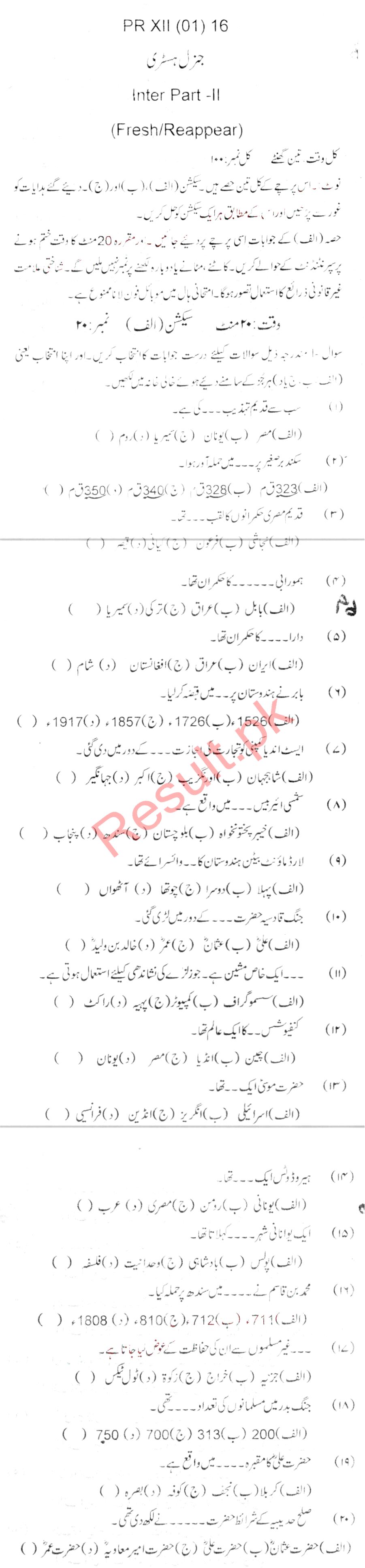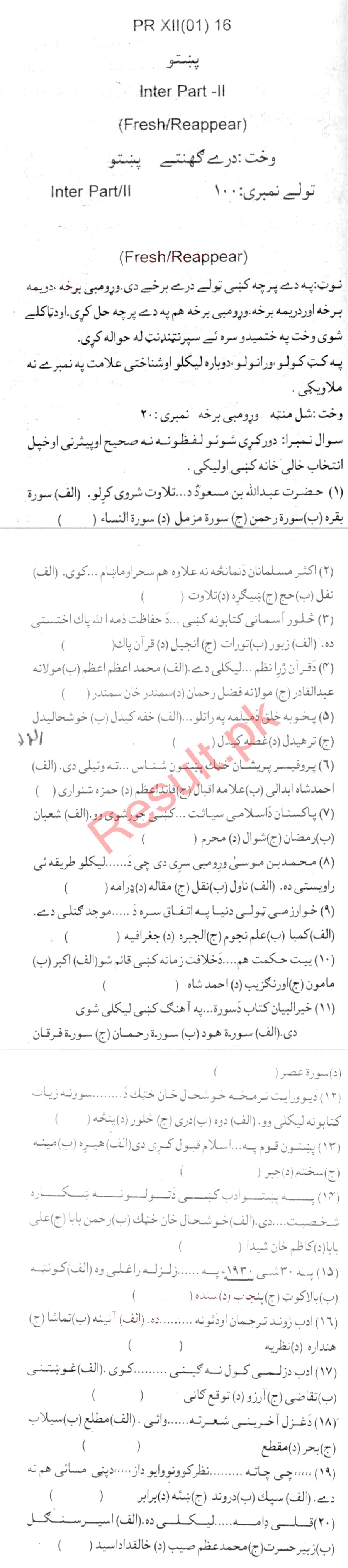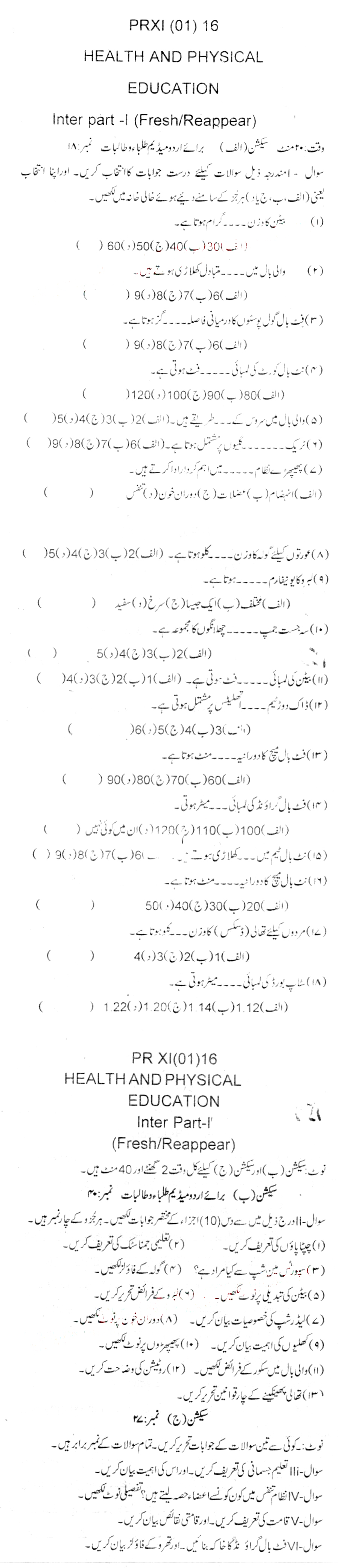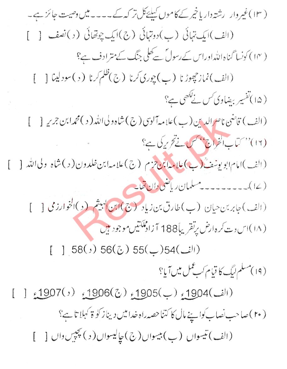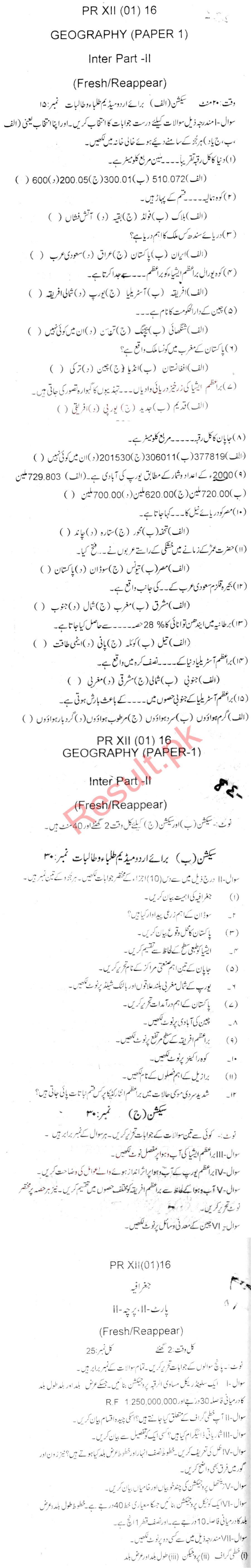 Bise Dikhan pastpaper 2016 12th class