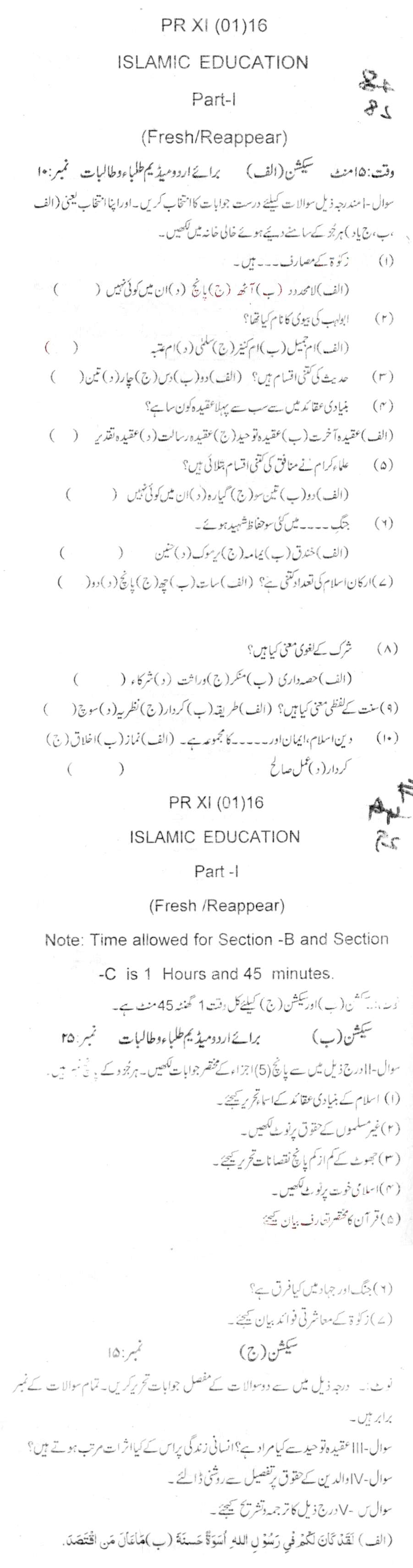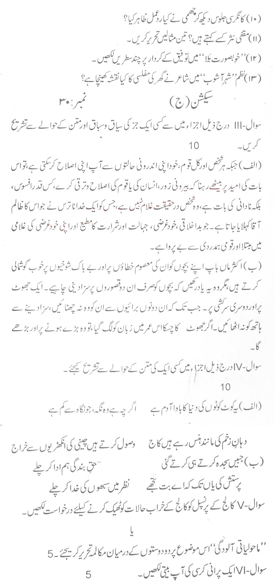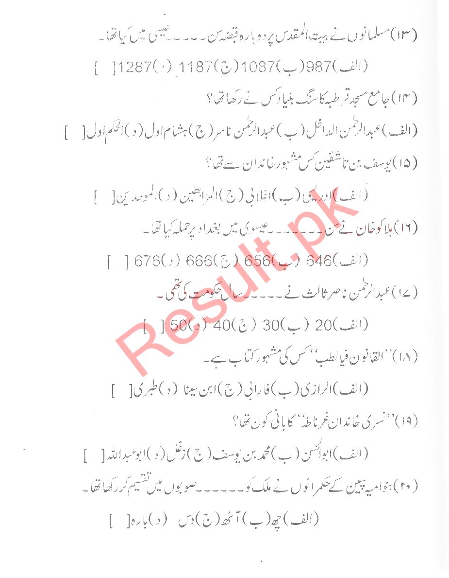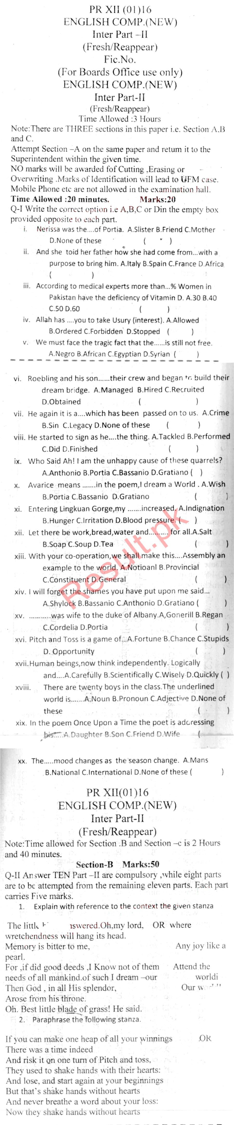 Bise Dikhan pastpaper 2016 12th class
