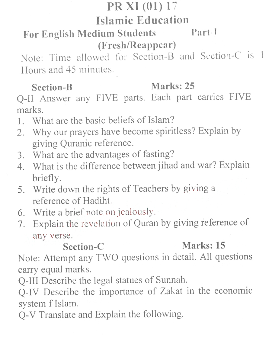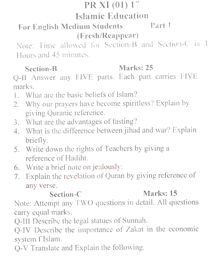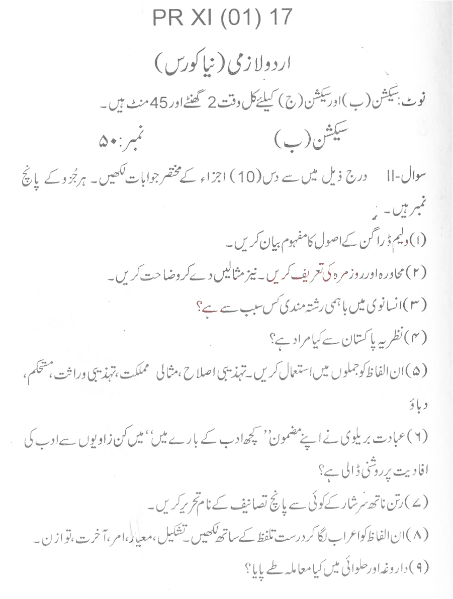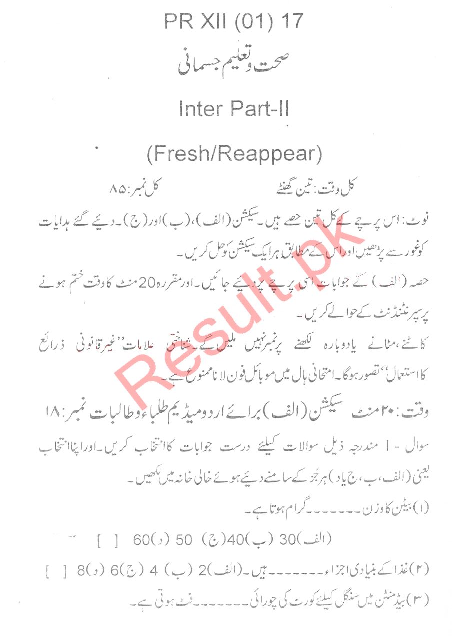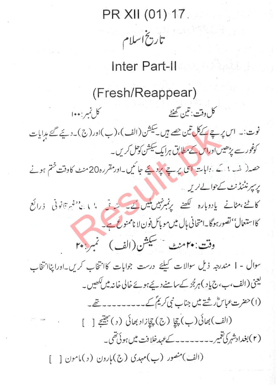 Bise Dikhan pastpaper 2017 12th class
