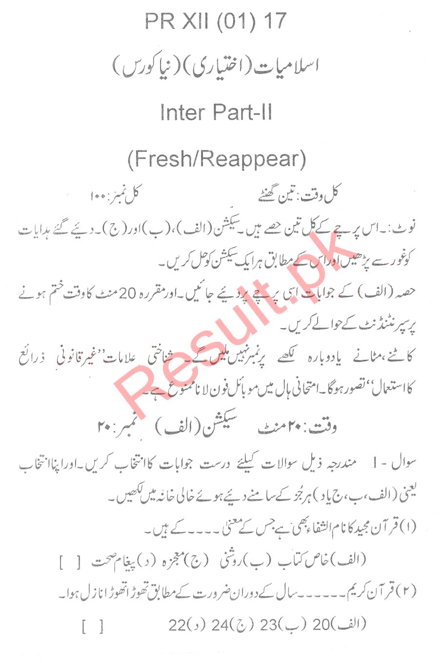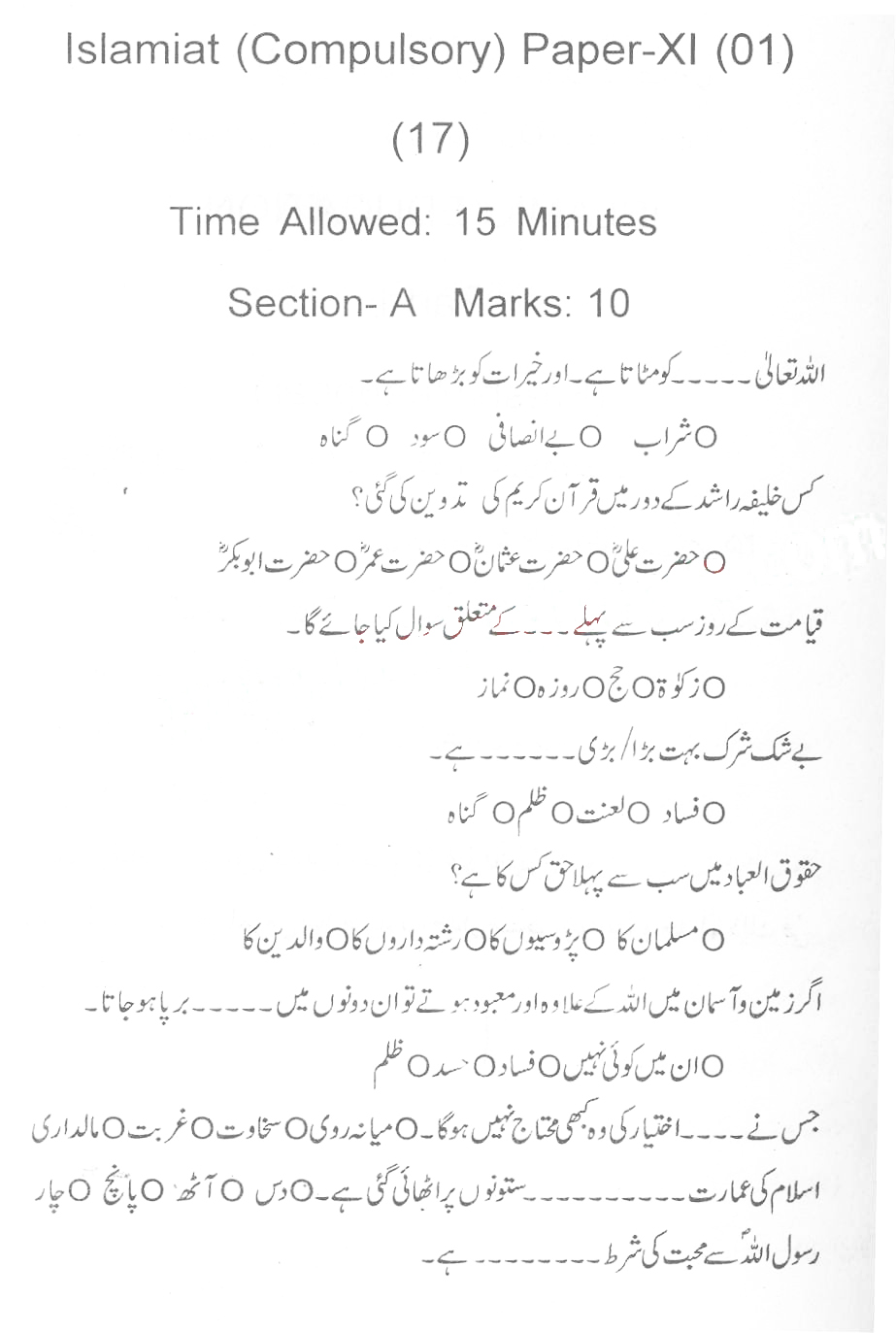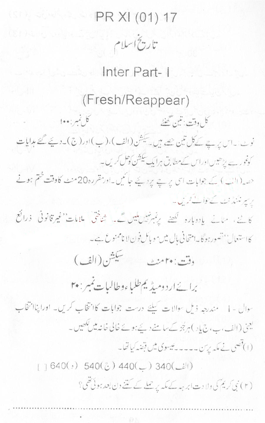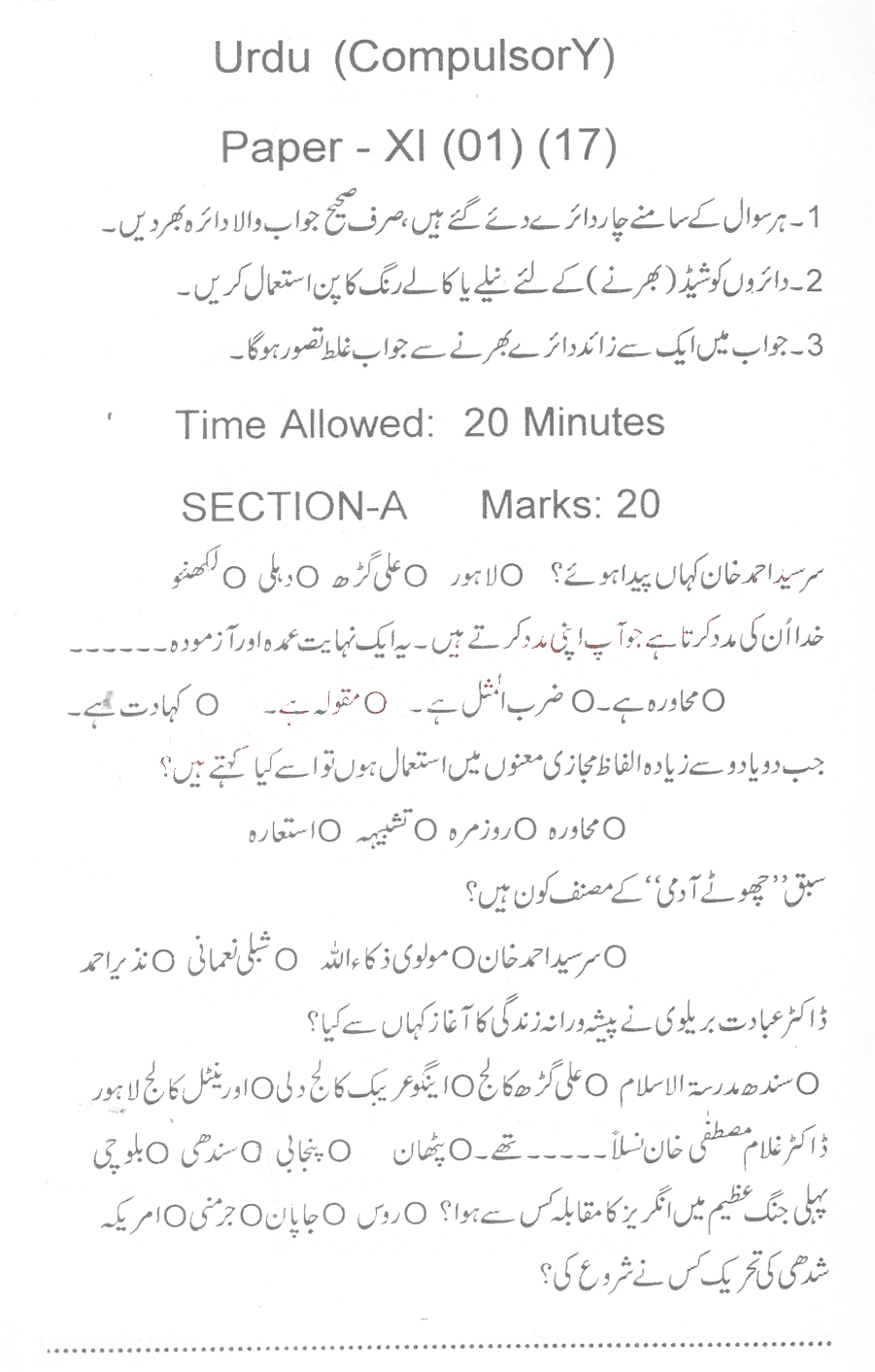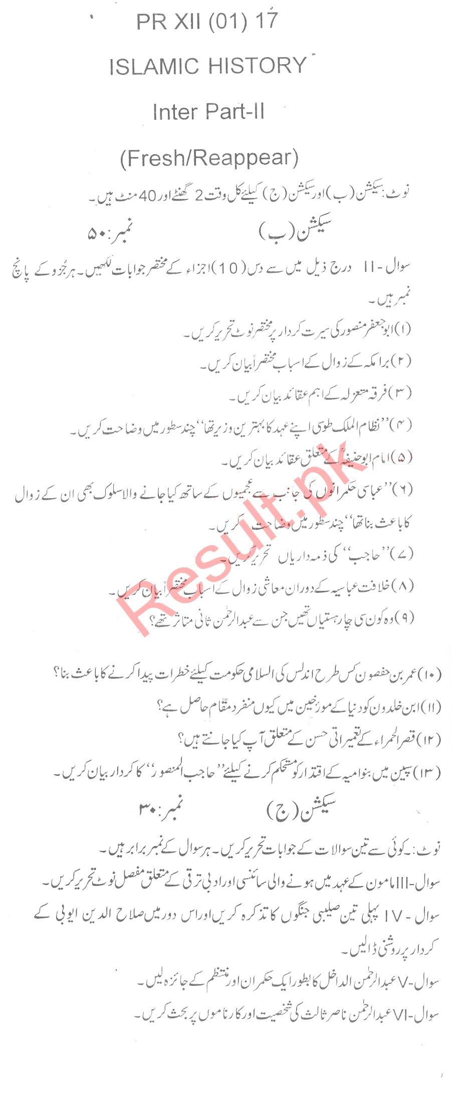 Bise Dikhan pastpaper 2017 12th class